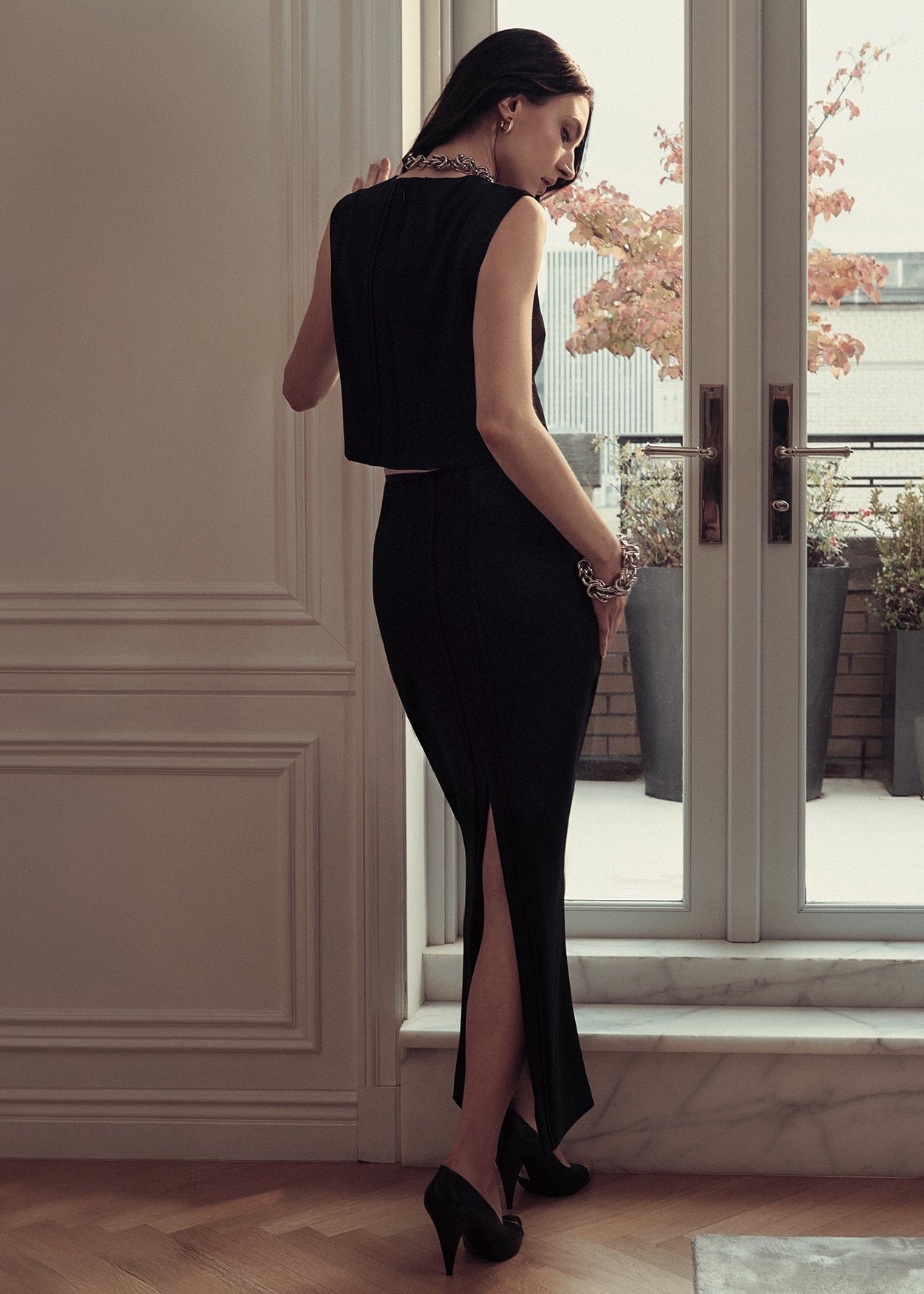 The Daisy Top is a crewneck, cropped tank in stretch crepe, fully lined for a clean finish. Detailed with a rear invisible zipper, grosgrain accents, and pintuck construction; precise, structured, and quietly feminine.