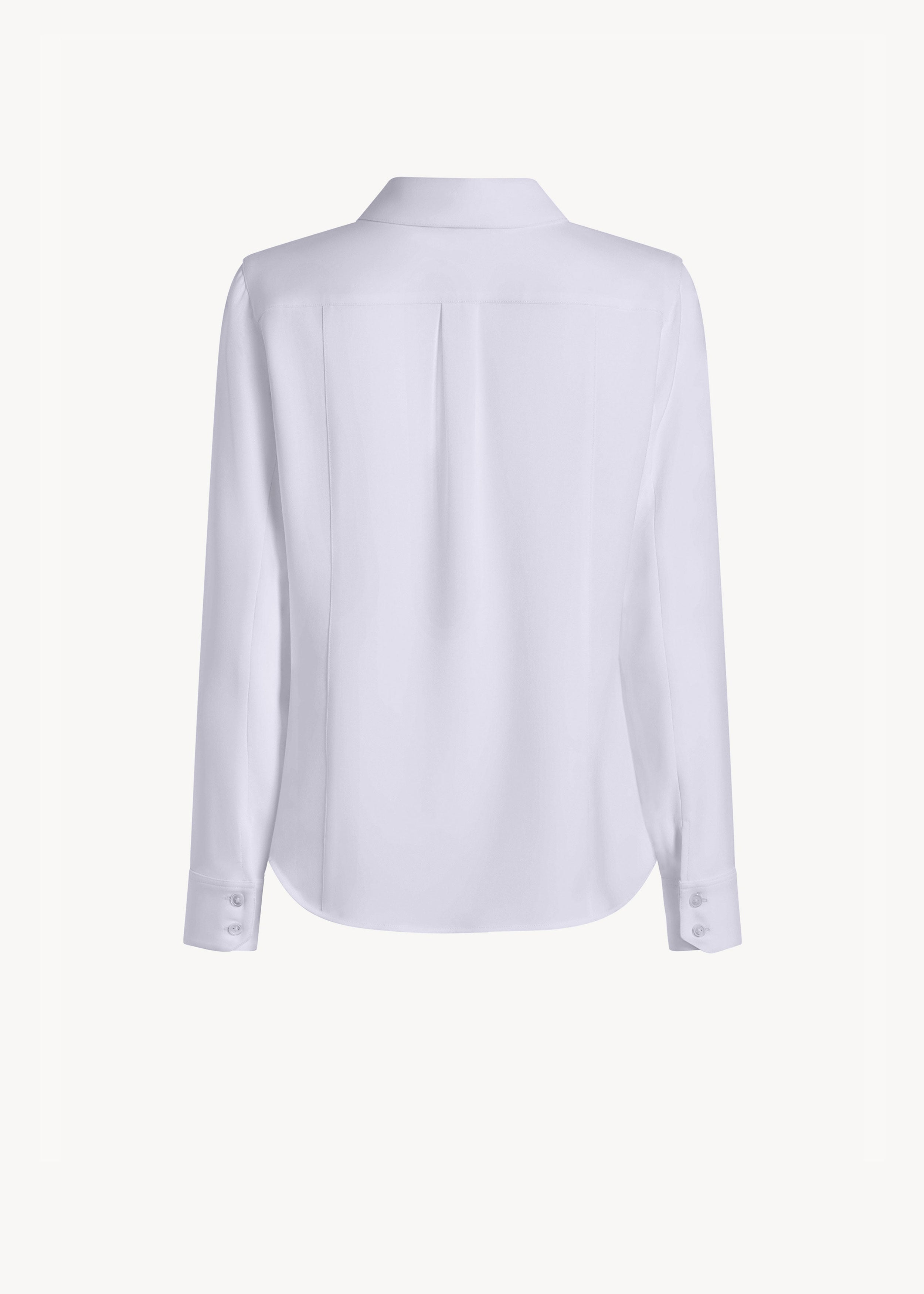 The Helen Top is a tailored, button-front blouse in fluid crepe, designed with a clean line and refined drape. Mother-of-pearl buttons add a subtle point of light; understated, precise, and enduring.